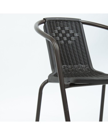 La Silla Genovia de rattan plástico y metal negro combina estilo,